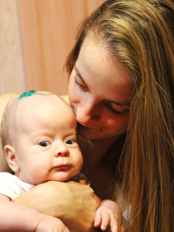 Каждый день к нам приходил нейрохирург следил за состоянием шва, проверял родничок. Заживление раны шло уверенно и стабильно. Но вопрос с внутричерепным давлением и гидроцефалией был все так же открыт. Операцию несколько раз переносили. Милашечке было сделано 4 операции (мини-операций) вентрикулопункции (выбор специальным шприцом жидкости из головного мозга через родничок). Таким образом, когда жидкость немного накапливалась, ее выводили. Когда жидкость набиралась головка начинала расти. Выбирали когда 20 мл, когда 40 мл. Давление резко уменьшалось, это сказывалось на состоянии ребенка. Делалась операция минут 20, без наркоза. 20 минут беспощадного крика. И еще 1.5 часа малышка успокаивалась у меня на руках у груди, жалобно всхлипывая, и громко плача. Ей было очень тяжело... На следующий день после таких операций она чувствовала себя очень хорошо, спокойно. А мы все наблюдали, ждали и надеялись, что операция не пригодится. Любое вмешательство в головной мозг несет последствия, а порой крайне неприятные. Но после таких пункция я все больше хотела, чтобы поскорее поставили шунт, нормализовали давление и циркуляцию жидкости.