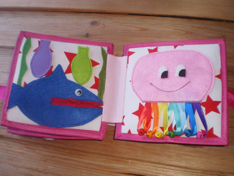 морская страничка: акула на змейке, рыбки на кнопке, низ медузы - радуга и англ.буквы учим.