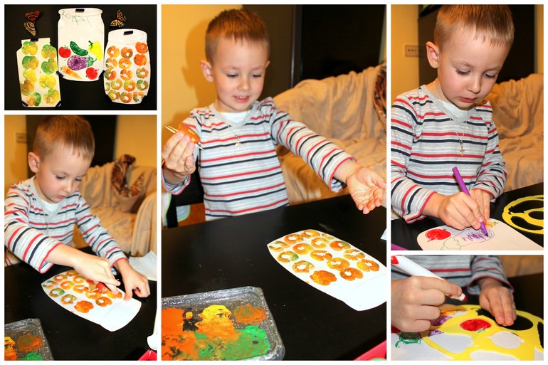 "Кампот" сделать нам помогли яблочки собранные на прогулке, а вот овощи рисовали по трафарету.