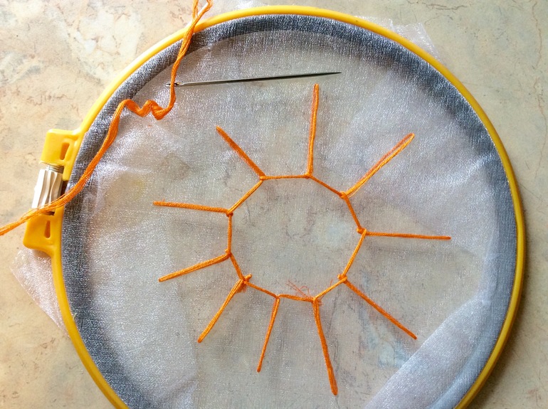 Сегодня взялись за иголку! Сперва для удобства вышивали на прозрачной ткани. Для безопасности купила самую большую штопальную иголку. Ромка так увлекся, что потом еще и на черной ткани без моей помощи практиковался!