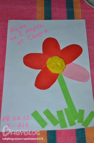 Вот такую открытку Саша сделала маме на 8 Марта (на занятиях в развивалке...я, ессно, помогала делать себе подарок))))