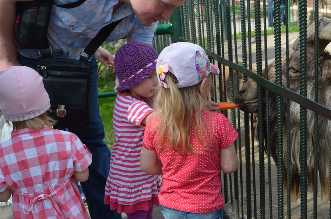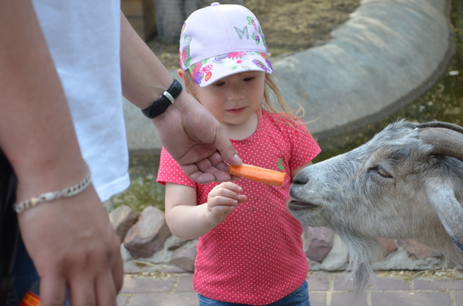 Неожиданно сложился у нас сегодня поход в зоопарк "Лимпопо". Идею подала Марусина мама. Но встреча толком не сложилась, т.к. приехали в разное время. Мы на 1,5 часа раньше и успели нагуляться на жаре, особенно наши папы - Сашин и Дашин. Увиделись, можно сказать, мельком. Дружно покормили винторогого козла, Маруся рассказала душераздирающую историю про то, как ей дверью прищемили пальчик (очень эмоционально и понятно), поделилась подробностями про свой АД, сфоткались...и расстались. Маруся - очаровашка )) Очень хотелось нормально пообщаться...но, видимо, в другой раз. И лучше не в зоопарке.