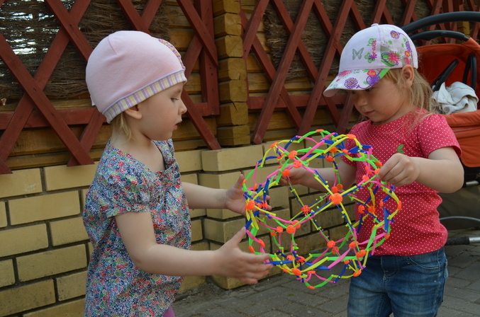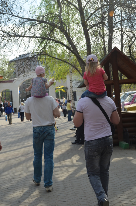 Пообедали в кафешке (девченки поели плохо, только пили). Покатались на аттракционах. К вечеру домой хотели только папы )))))))) Саша заявила, что она "сасЕм не устала", Даша ее поддержала, ну а папы без разговоров взяли "не уставших" дочек на плечи и пошли на выход