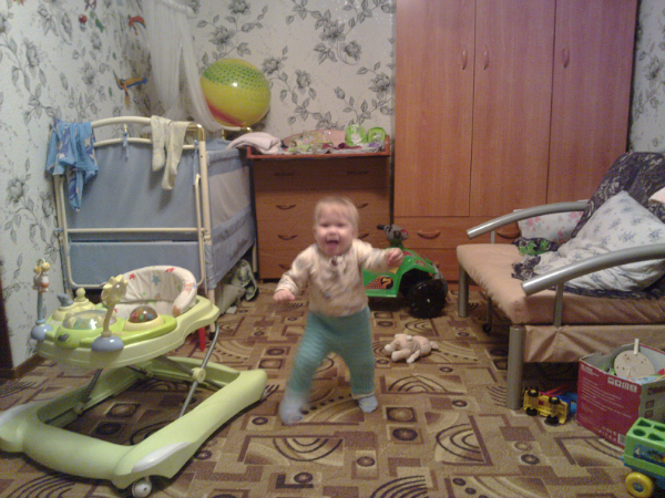 Ни чего себе, молодец какой)))))))))))))))))))))))))))))))))) и когда же мы начнем бегать по комнате)) А то уже спина моя отваливается за ручку его водить)))