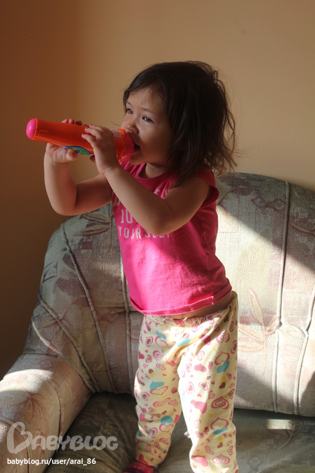 Ух как знакомо, Николь в таком возрасте включала микрофон от караоке и пела песни, стихи расказывала. Прикольно было)