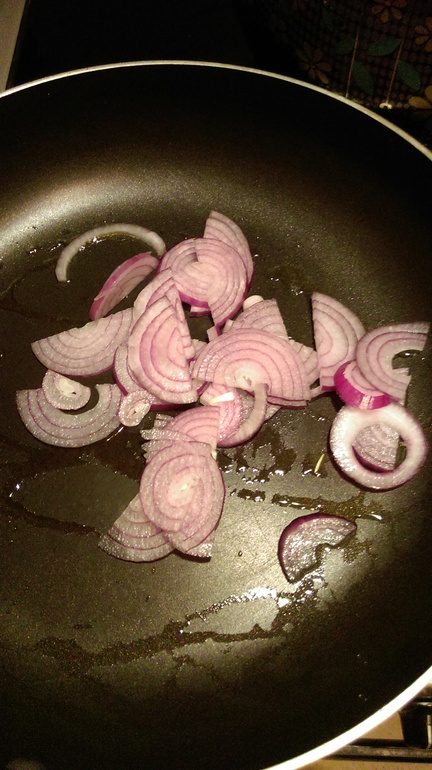 Пока капуста наша кипит, делает фарш. Режем лук кладем на сковородку