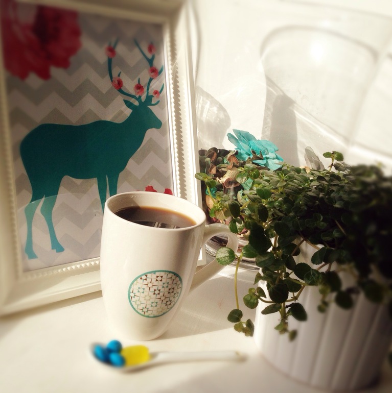 Картинка с зеленым оленем и брусникой на рогах самодельная иль покупная? Спрашиваю и глотаю кофе))))