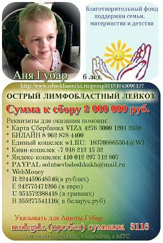 Встретила историю этой девочки - Анечки - в Одноклассниках в группе "Солнце в ладошках".