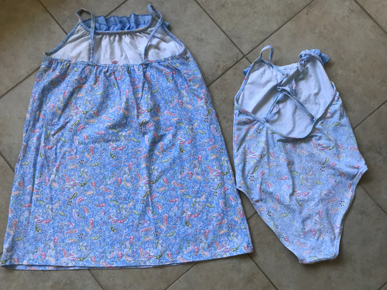 Интересует комплект черно белый размер? Цена? Белая туника с кисточками? Голубой с купальником? Голубенькая кофточка с крылышками?