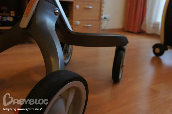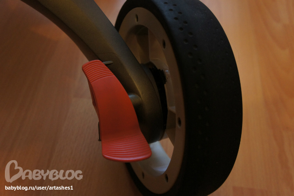На фото обратите внимание на правое колесо,это коляска без ребенка и щель больше чем слева,также видно что отсутсвует наклейка в месте где должна крепится сумка.Позже отправлю фото второй коляски более подробные
