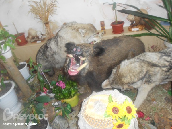 Комната посвященная животному миру нашего Пластовского района. Компазиция называется " Охота волков на кабана"