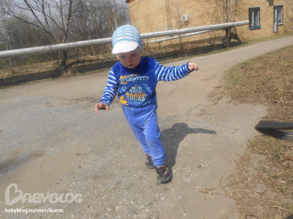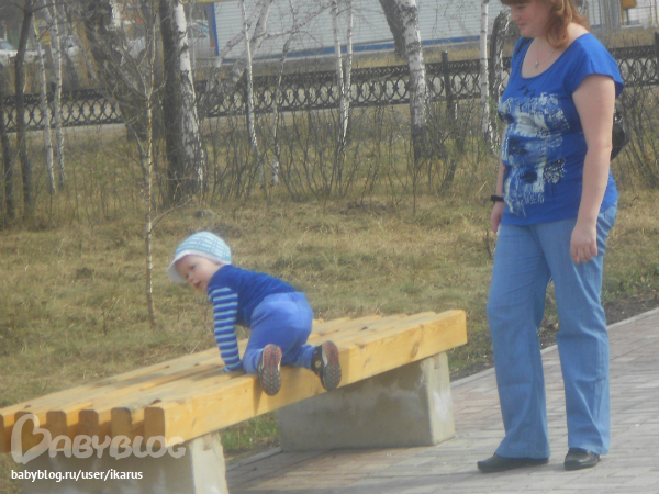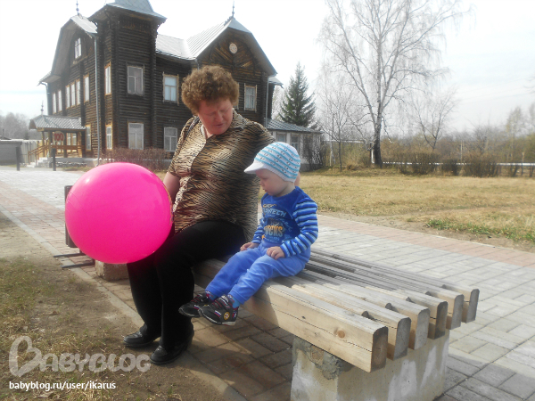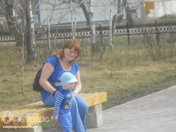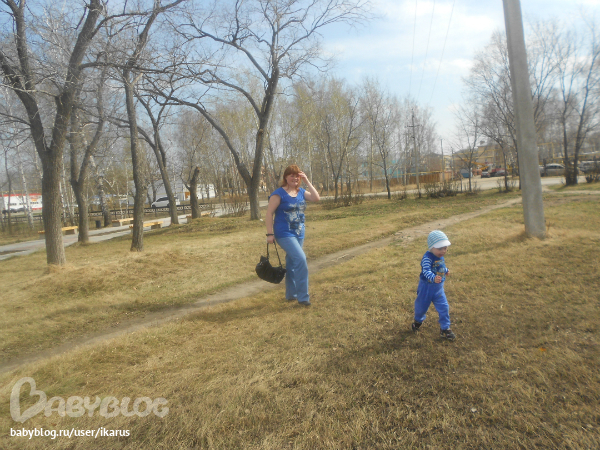 Сегодня погода продолжает радовать +20, ветерок только не хороший был.Решили с Мишей и бабушкой погулять.