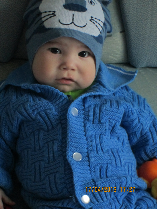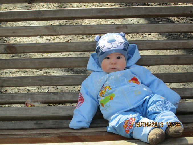 привет нам сеодня 6 мес. даже невериться что мы такие большие. должны были идти на прием но талонны только на вторник а к неврологу вообще дали только на 6 мая. в 5 мес весили 7кг и 67см . ползать пока не хотим только вокруг своей оси крутимся.только вовремя прогулки мы теперь не хотим лежать выгибаеться хочет сидеть наверное. вот фото с нашей прогулки