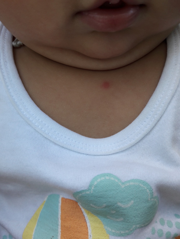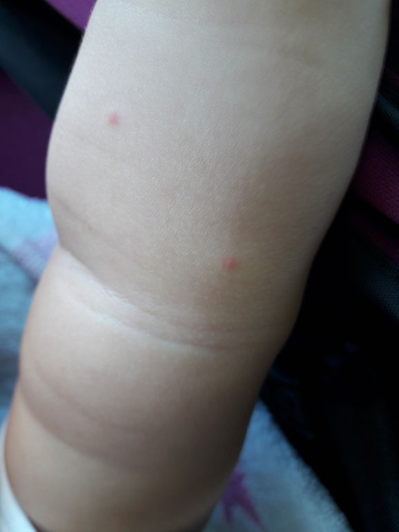 Добрый день подскажите пожалуйста, сегодня утром обнаружила у дочки красные точки на теле (лицо ,руки ,ноги ,грудь) думала комары ,но через время еще появились на ногах и руках . Приходила врач говорит на ветрянку пока не похоже,толком ничего не сказала ,прописала супростин и следить за темпой.Сейчас вечер новых нет ,но точки стали плотнее как прыщики ,температуры нет ,чувствует себя хорошо. Подскажите что это? Ветрянка так начинается