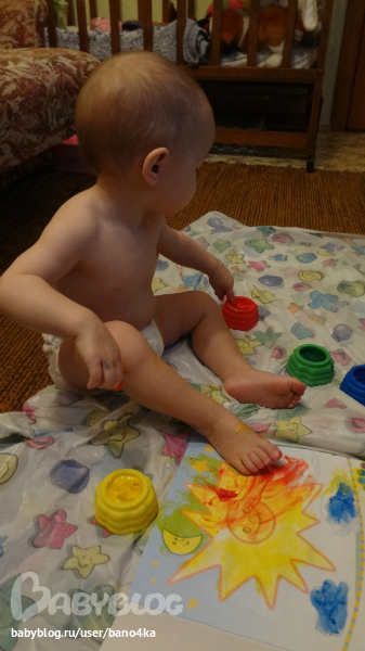 Молодцы! А моя не оценила пока краски! А водная разукрашка у нас такая же! Только моя потычет раза 2-3 в неё, а потом воду проливает всю, размазюкает, в рот тащит,брр))) Не созрела...
