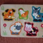 Б/У, практически не играли. Думаю, что подойдет для деток от 8 мес до 1,5 лет. Когда ребенок вкладывает картинку в пазл, воспроизводится "голос" животного, так что пазл гавкает, мычит, чирикает.