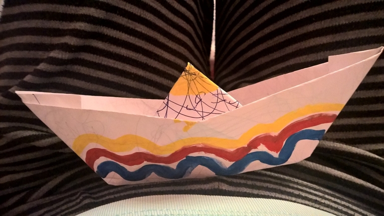 У нас на улице ручьев пока не наблюдается. Но мы занялись оригами. Наделали корабликов - заготовок для будущих ручьев. Включила мастер класс по изготовлению корабликов и мы с дочкой (я тоже не умела делать кораблики) смастерили по первому кораблику в своей жизни)