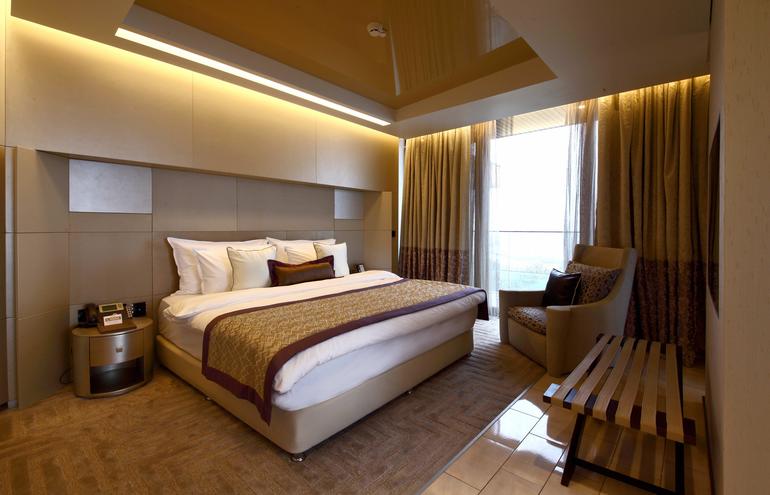 2-местный стандарт ДеЛюкс. 37 кв.м.В номере: В номере: ванная комната, спутниковое ТВ, кондиционер, телефон, Wi-Fi, фен, мини-бар, сейф, лампа для чтения, набор мебели (двуспальная или две односпальные кровати, рабочий стол, зеркало для макияжа), балкон. Количество номеров: 360.