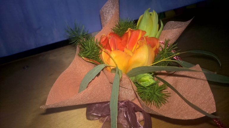 У нас был очень душевный утренник в детском саду. Ребята поздравляли мам и бабушек. Устроили нам настоящий запоминающий праздник. Сначала нам спели песню про мам, а далее проводили в настоящее кафе с вкусном печеньем) Подарили цветы. А дальше началось самое интересное - настоящий модный приговор! Костюмы делали конечно мамы причем из подручный материалов, пакетов, одноразовой посуды, бутылок от йогуртов.
