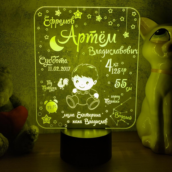 Прекрасный подарок на рождение малыша - Светильник - метрика