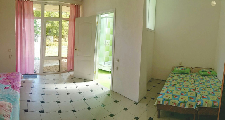 Также имеется отдельностоящий двухкомнатный дом. До моря пешком 5-7 минут, спуск пологий. В каждом номере санузел, душ, кондиционер, ТВ, холодильник и летние веранды.общая кухня для самостоятельного приготовления. В некоторых номерах имеются кухни, а также есть общая кухня для самостоятельного приготовления. На территории расположена детская площадка с батутом, бассейном, песочницей. Также имеется уютный уголок с барбекю, теннисный зал, бесплатная стоянка для авто. Тихое, спокойное место для семейного отдыха. Теплое и мелкое Азовское море, идеальное место для отдыха с малышами! Будем рады Вас видеть!