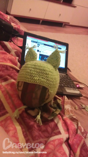Шапочка прелесть)))) Ушастенькая какая)))) А я начала большой плед вязать, но чего-то туго идет. Сегодня целый день валяюсь, вообще ничего делать не хочу. Наверно у меня сегодня выходной))