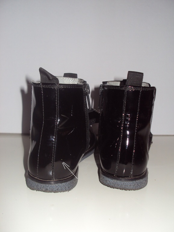 состояние хорошее.есть чирки от подошвы по внутренней поверхности . на пятке есть скол лака.