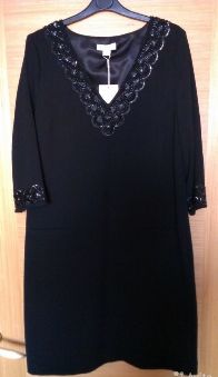 6. Новое черное платье-футляр, Англия, 12 размер, на наш 44-46. На подкладе, шикарный силуэт, рукава 3/4, отделка по вырезу и рукавам. Цена 80 фунтов. Отдам за 2500 руб.