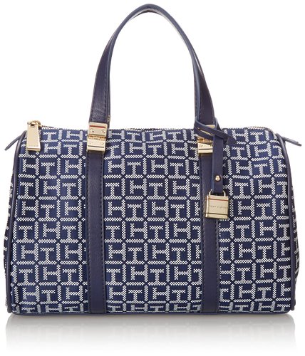 2. Tommy Hilfiger Monogram Satchel Top-Handle Bag (темно-синий с белым фирменный жаккард с логотипом), золотая фурнитура, подвеска с замком,) размер примерно 28х18 - 11800 руб. (в пути из США)