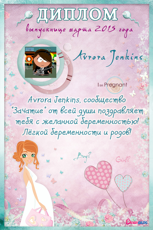Поздравляю!!! Как то осенью вы меня поздравляли с моей беременностью. А теперь я вас! Желаю, чтобы все у вас было впорядке! А я приступаю к новому планированию (вот и мое время настало после ЗБ))))) буду вас догонять)))