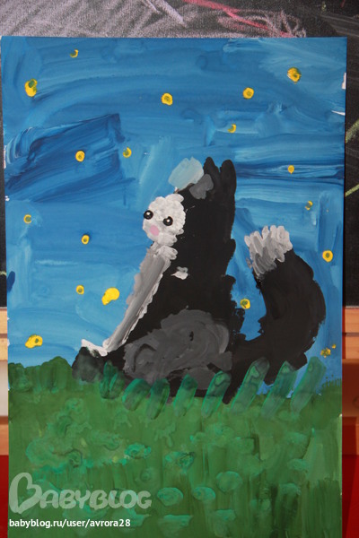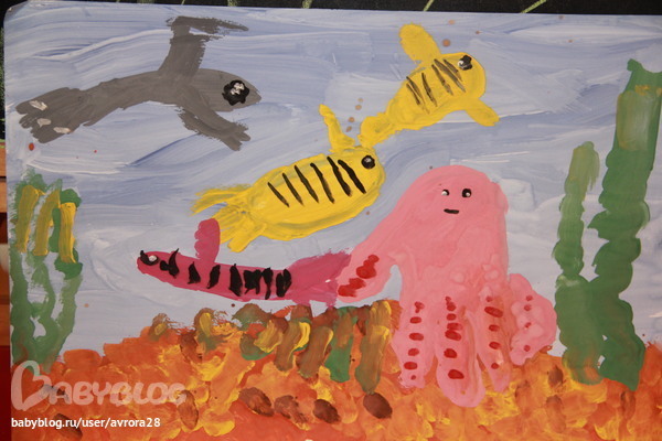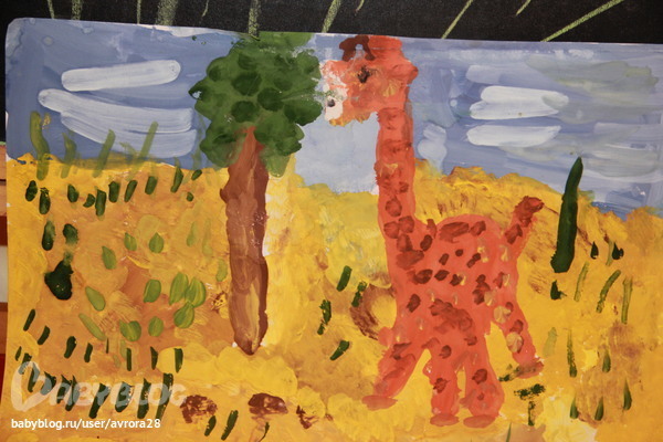 Педагог ее хвалит, говорит, что у нее рука НЕ боится рисовать красками, размах еще тот)))) и воображение работает очень хорошо))) всегда кв любой работе предлагает свои варианты и дополнения темы рисунков)))