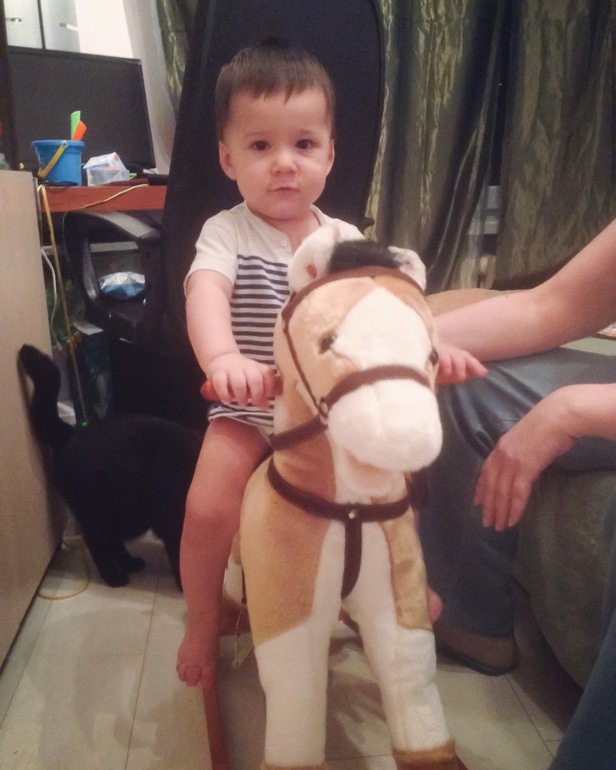 2. Лошадка-качалка. Нравится, но не хит. Пока наверное ещё не понимает всей фишки, но иногда подходит и просится покачать. До стремян пока не достаёт ножками, но сидение, по совету на ББ, я выбрала максимально удобное, поэтому все норм. Грива и хвост лезет конечно (это бич всех подобных качалок), но не критично, да сын как-то не рвёт и в рот не тянет волосы