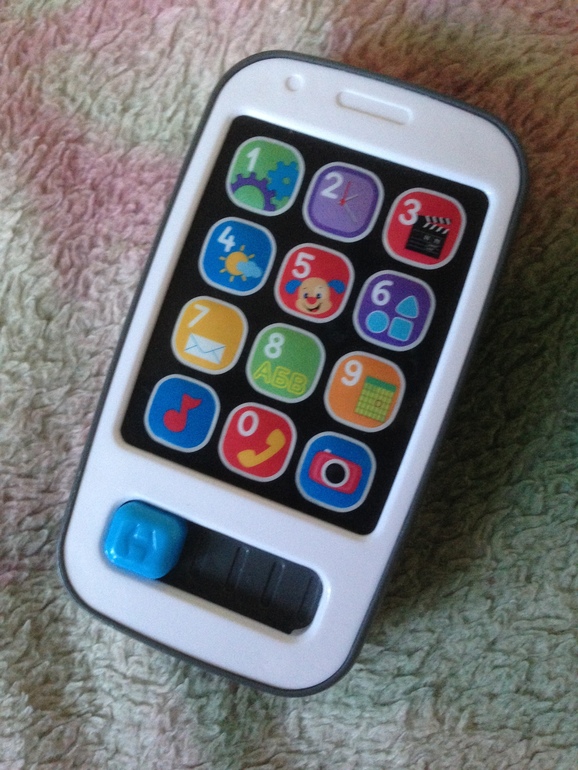 2. Телефон от Fisher Prise. Это один из подарков коечной тоже на НГ. Очень прикольная игрушка. Единственное, очень уж тихая. Но Владюха этот телефон обожает)