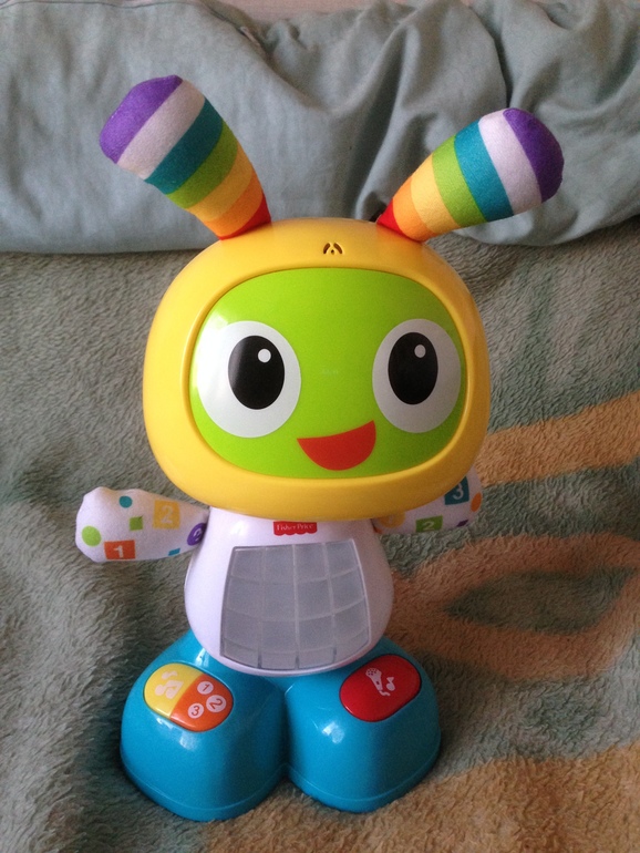1. Робот Бибо от Fisher Prise. Купили его в подарок на НГ. Я, если честно, даже расстроилась и пожалела потраченных денег сначала. Но сейчас Влад очень любит робота. Нажимает на кнопки, танцует. Мне же эта игрушка нравится тем, что она не так сильно надоедает))) Там много вариантов песен и звуков, так что не приедается, как тот же горшочек этой фирмы. Вот теперь борюсь с желанием купить ученого щенка))