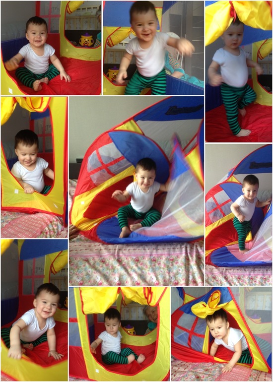 У вас наверное пониже она. Я с дуру гналась за конкретно эмитацией домика, поэтому у нас палатка высокая. Да и Влад обожает на стенки кидаться)