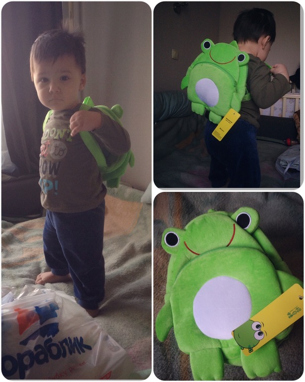 А сегодня с Али нам приехала обнова - рюкзак-лягушонок. Шикарная вещь! Отлично пошита, вместительный и очень приятный на ощупь!