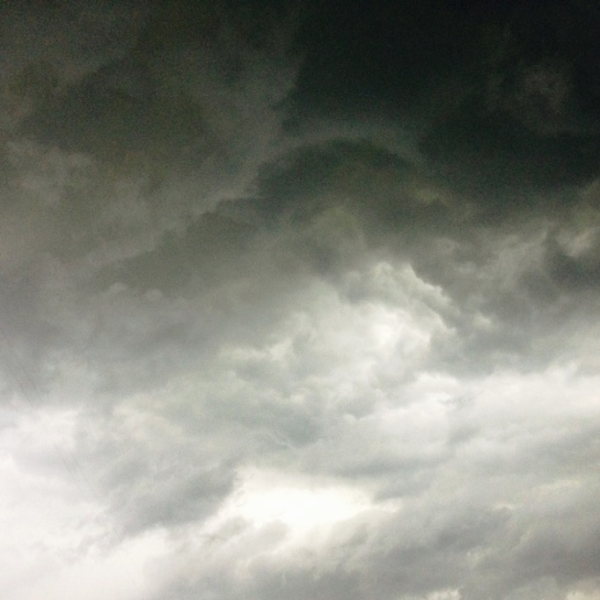 Сначала на спокойное небо с запада начала довольно быстро надвигаться большая темная-темная туча. У нее были очень четкие края, и было видно, как она приближалась: