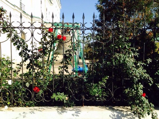 Розы за церковной оградой (храм Спаса Нерукотворного Образа, виден на 1-й фотографии):