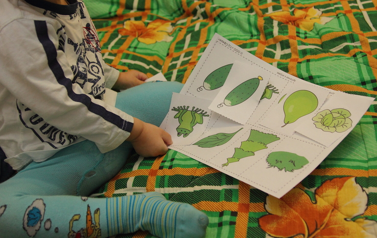 на другой денек наконец-то. посмотрели флэш-карты - "что бывает зеленого цвета" и "что нас окружает". УРА!