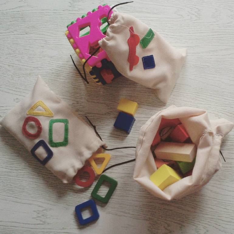 Всем привет! Давно я не появлялась, а всё потому что я снова ушла запоем в своё хобби, на этот раз шитьё. Началось всё с того, что мне ужасно надоело искать по полчаса (а то и больше) детали от сортеров и прочих конструкторов, чтобы поиграть с ребенком. Здесь все претензии к производителям игрушек (Я уже писала об этом здесь): они совершенно не думают о главных своих клиентах - мамочках. Для меня имеет значение не только сама игрушка (суть, качество, цена), но и то, в чем ее потом хранить. У нас много различных сортеров, конструкторов и мозаики, которые упакованы в пакетик, и после вскрытия все мелкие детали разносятся по дому. То есть, я за свои деньги получаю не только игрушку, но и головную боль - где взять коробку и поскорее, чтоб сложить и не растерять детали конструктора. Поэтому я решила устроить день Мешков - села за машинку и выполнила работу производителей, а именно - сшила мешочки для мелких игрушек, мозаики, лото и прочего. На практике мешки оказались наиудобнейшими гаджетами. Я специально сделала на некоторых аппликацию, чтобы было легче ориентироваться что куда складывать после игр, наш папа оценил! Только вот выяснилось, что мелочёвки у нас куда больше и разнообразнее, чем я думала, и поэтому буду шить ещё мешки, штук 10!