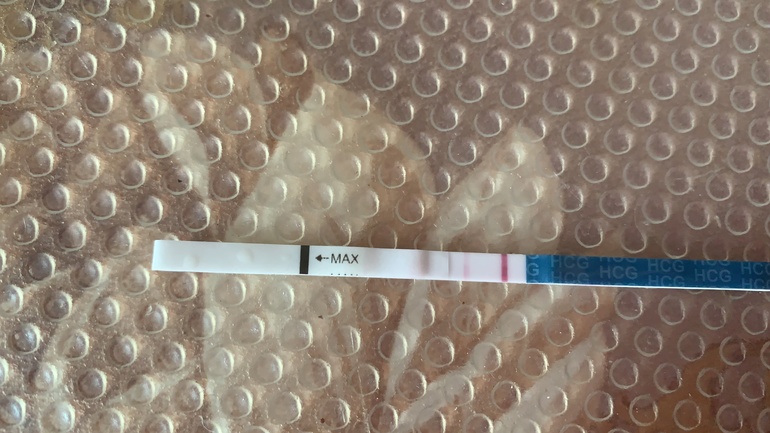 Задержка 4 дня ,грудь побаливает ,сделала на первый день задержки ели ели если на свету приглядываться и сегодня утром сделала ,подскажите реагент или оно ?