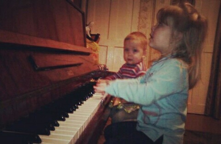 А еще ,учу ее игре на фортепиано. Пока только начальный этап, но она уже проявляет желание играть,сама садится и поет,вчера,например, был концерт ,она сидела играла и пела ,а Пашка сидел мешался тоже пытался что то играть.