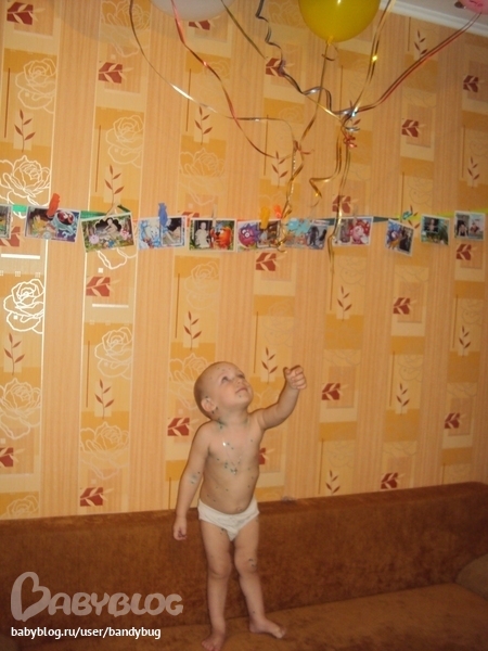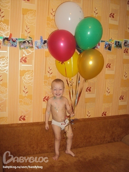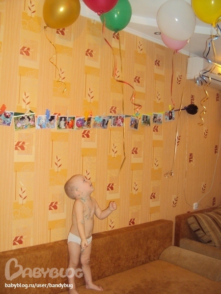 Утро началось с восторженных слов: "Шарики! (гелевые в зале под потолком - увидел их из своей комнаты, еще сидя на диванчике) Ёжик! (опять же в зале на стене увидел фото в рамочках-смешариках, которых просто обожает!)" После пошел непременно все потрогать и рассмотреть поближе!