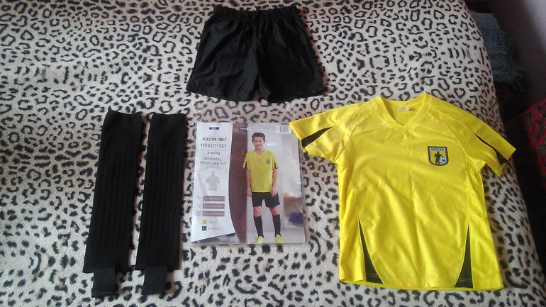Футбольный костюм рост 116 см, но футболка думаю большемерит, новая привезена из Германии. Цена 500 рублей + доставка почтой.
