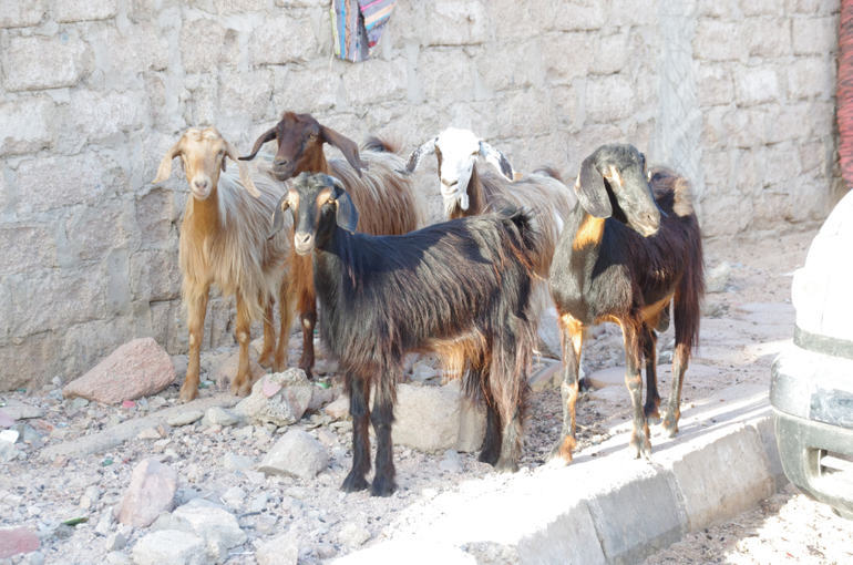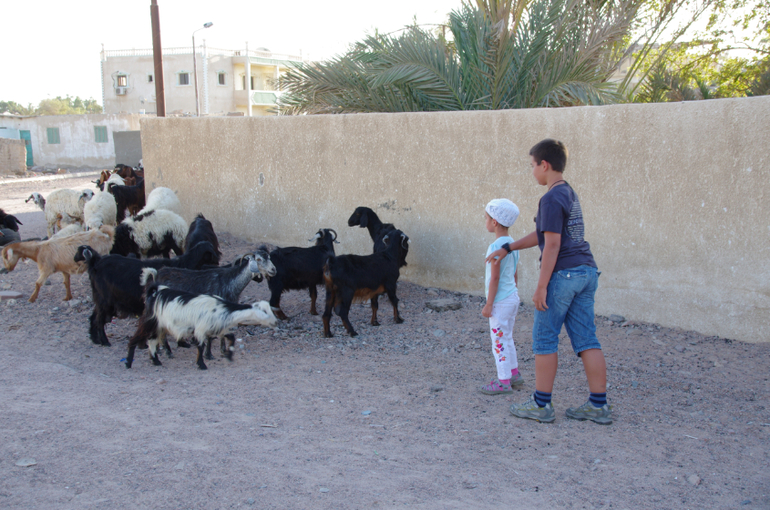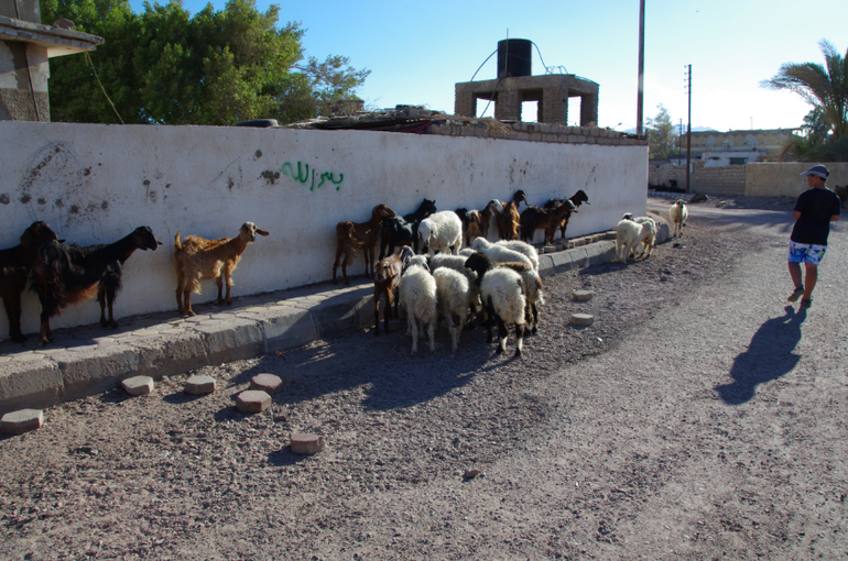 Да-да, живой зоопарк. Козы и овцы спасаются от жары у стен в тени, потом задумчиво переходят дорогу, а автомобилисты терпеливо ждут стадо. Если к ним подойти со съестными припасами - они быстро соображают что к чему и идут в окружение :))
