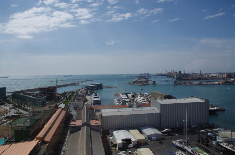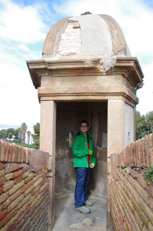 Мы на горе Монжуик, созерцаем окрестности. Я с объективом, сын - с подзорной трубой.