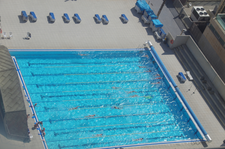 У детей тренировка в бассейне: