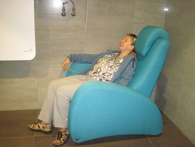 кста, кресло очень странное, по ходу оно раскладывается, в нем же сидеть нельзя, точнее можно, но голову по центру не положить. А вот если кресло разложить и лечь на него животом, то вполне удобно для массажа шеи или спины