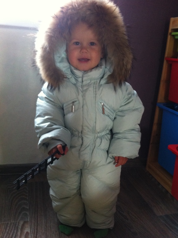 Комбинезон подойдет на рост 84-96 см. По бокам утяжки, подойдет и мальчику и девочке, у меня носил сын( в шапочке с меховой бомбошкой и медвежонком принимали за девочку), хотела дочке оставить , перебор уже зимней одежды. Состояние идеальное, после химчистки. Очень теплый и легкий. Опушка шикарная!!! Фото плохо передает цвет, нежно голубой. В подарок отдам мунбуты . Покупала на сайте avivashop.