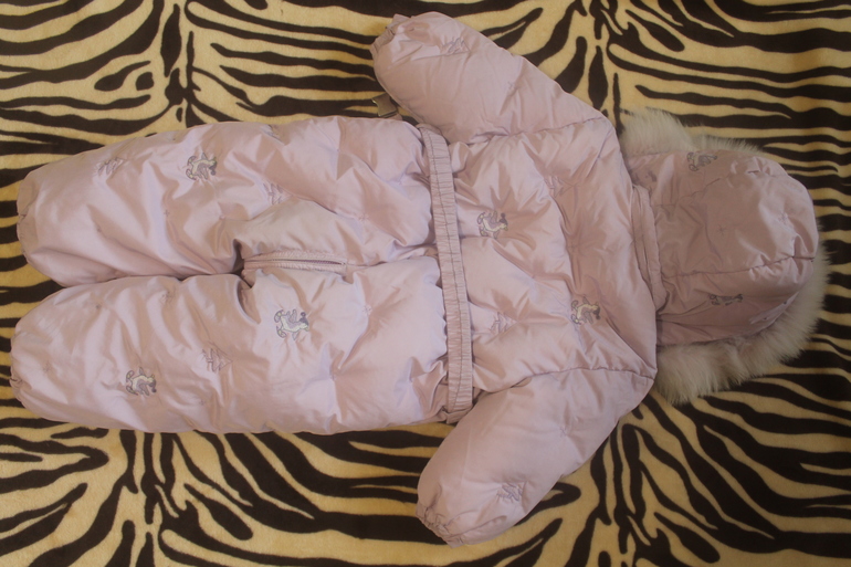 Комбинезон в отличном состоянии!!! Идеально до роста 88 см. Мы перерастем похоже((( Шапочка xs зима. Пряжка в царапинах на комбезе, в химчистке не был. Пятен нет. Доставка почтой из Перми.